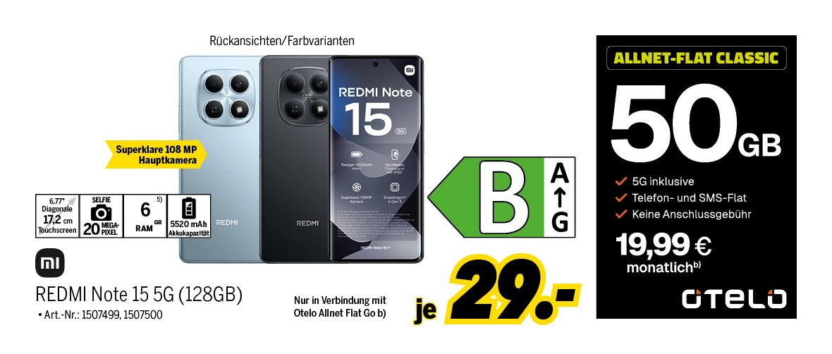 a2) Bei Neuabschluss oder Vertragsverlängerung eines Mobilfunkvertrages im Tarif Smart Entry, Lite, S, M, L, XL oder XXL bekommst Du einmalig 500 GB im Inland und 100 GB im EU-Ausland für die gesamte Vertragslaufzeit (24 Monate) zusätzliches Datenvolumen. Das Datenpaket steht nach dem Verbrauch des Tarifinklusivvolumens zur Verfügung.